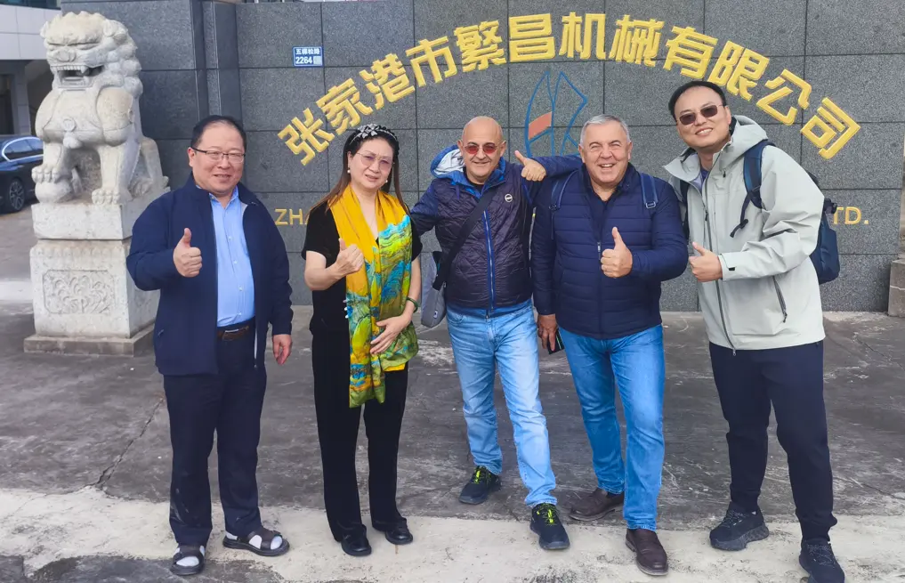 I 2025 købte den italienske virksomhed LAMPLAST SRL to SRLW-1300/5000 fuldautomatiske kold- og varmblandede enheder fra vores virksomhed. Billedet viser de to chefer for dette firma, der inspicerer de færdige produkter på vores fabrik.